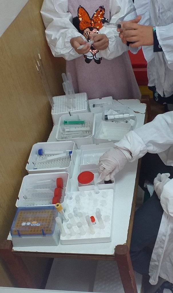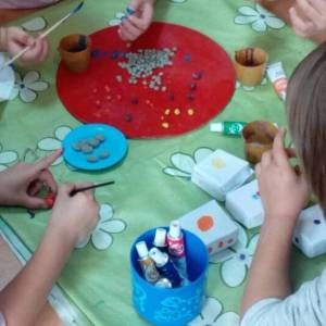 У нашој малој лабораторији деца су испитивала квалитет лекова. Од теста деца праве лекове и боје их темпером.