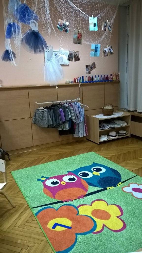 У сарадњи са родитељима, деца доносе од куће своје хаљине, кошуље, сукње, јер су показали велико интересовање за модом. И тако смо направили центар где се налази сва гардероба, где су деца могла самостално да узимају шта желе и облаче.