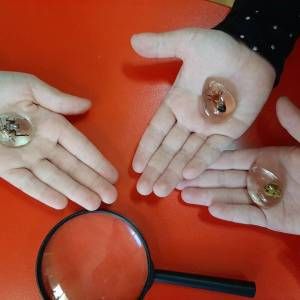 Инсекти у стаклу су убачени као средство да се прошири игра прављења резервата у оквиру пројекта. Деца су их назвала новим становницима резервата, а лупе су биле прво средство које су узели за проучавање малих бубица.