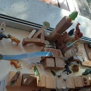 На слици је резерват животиња настао током игре у соби предшколске групе, а у оквиру пројекта „Мапе“. Размишљали смо где бисмо све волели да стигнемо помоћу разних мапа и стигли смо до резервата.