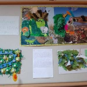 На слици је део процесног паноа где се пројекат из куће вратио у вртић. На паноу су радови настали са децом и родитељима заједно. У питању је истраживање о резервату природе и животиња.
