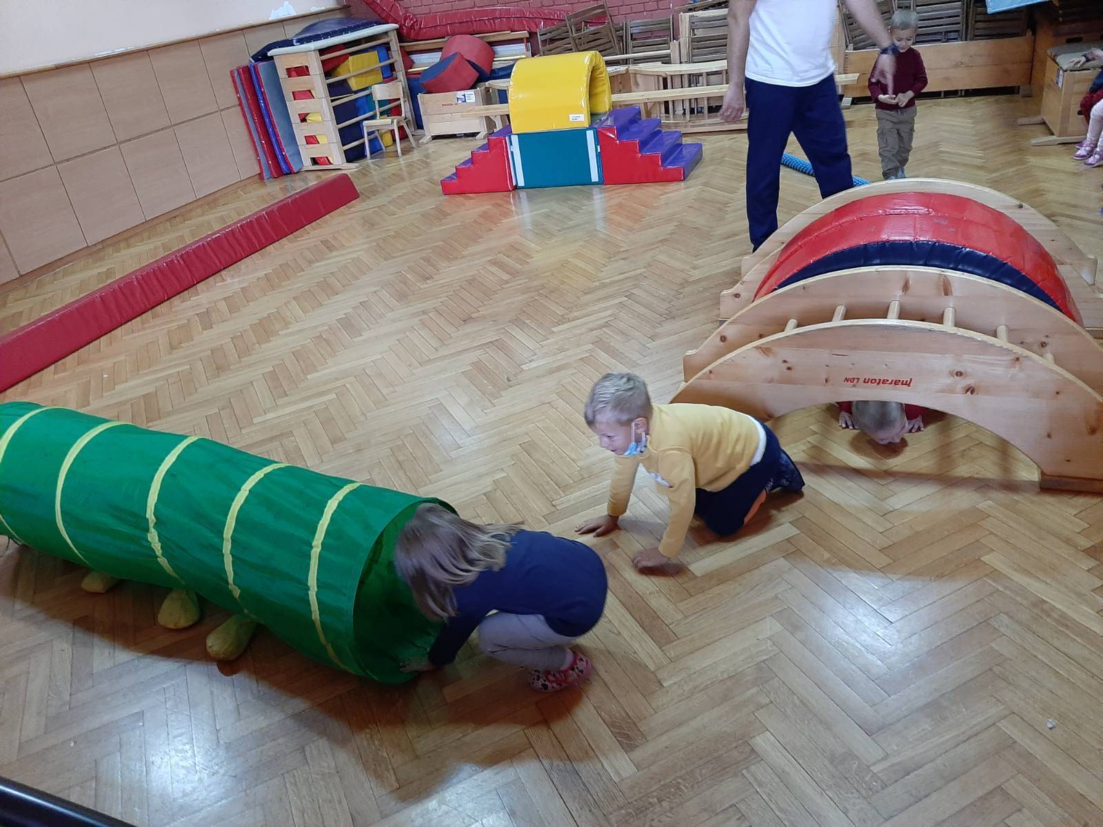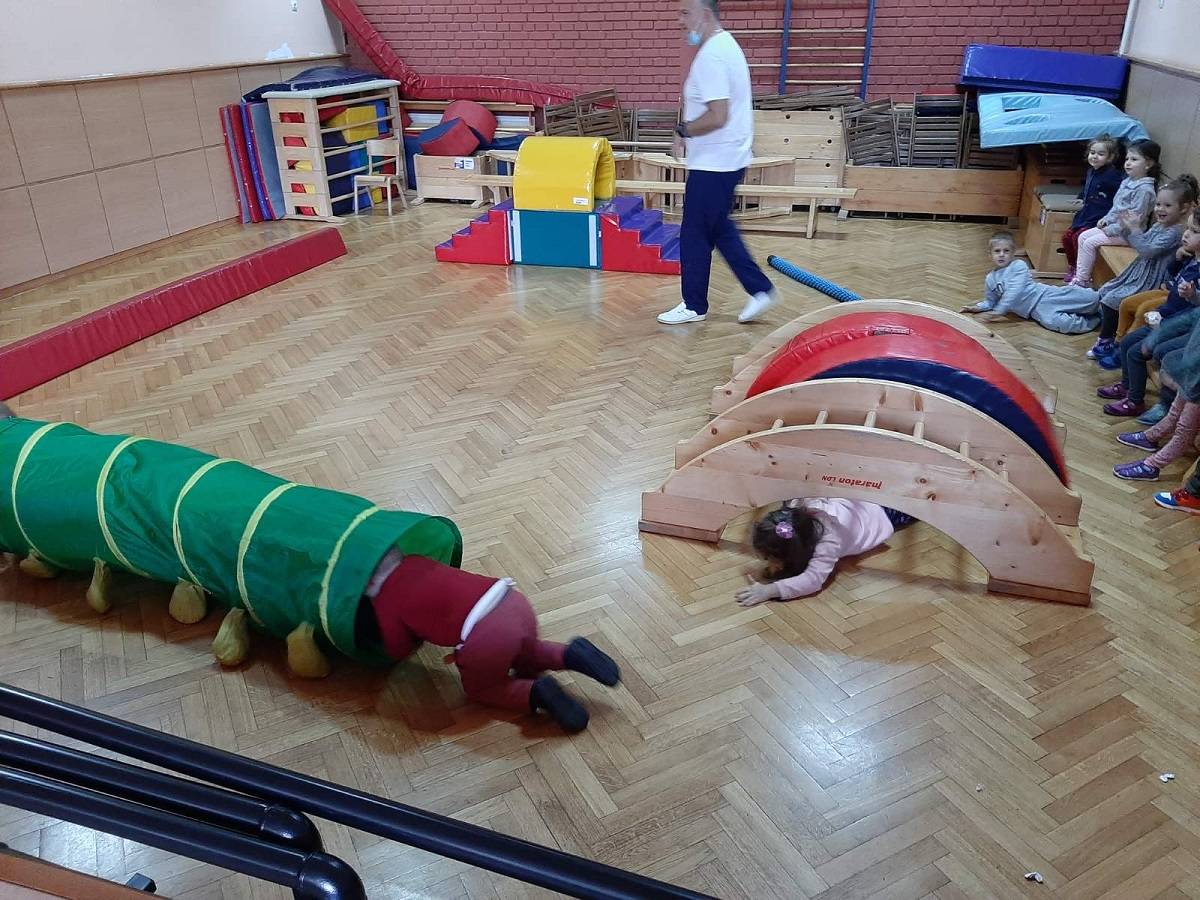 Просторије вртића и показујемо колико смо спретни и окретни кроз први полигон у сали вртића.