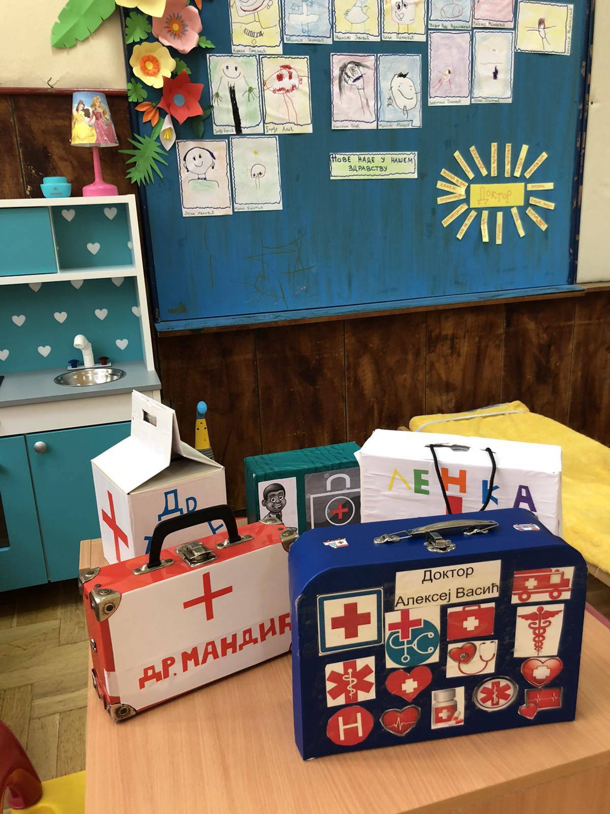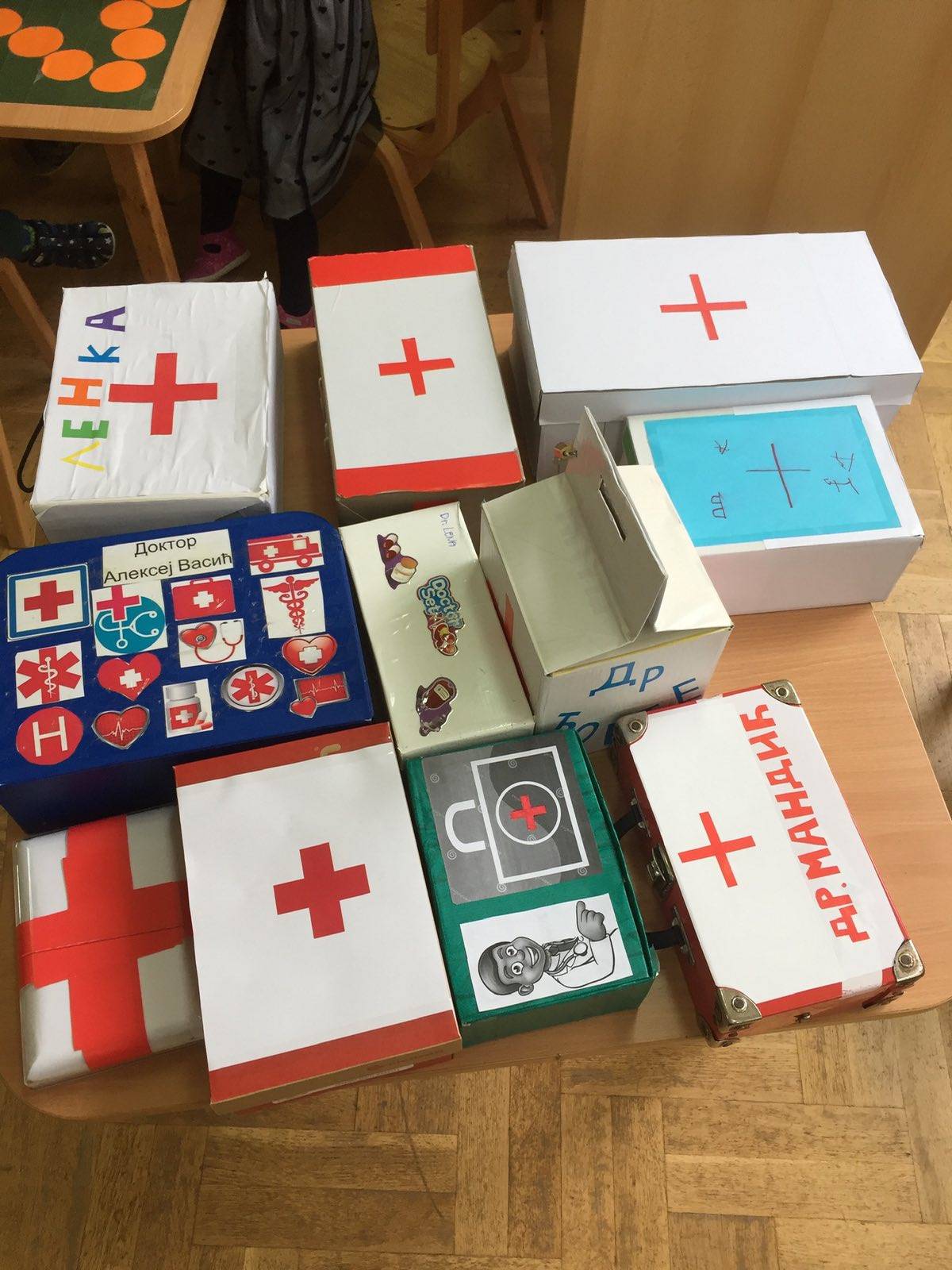 Деца су заједно са својим родитељима правила своје докторске торбе за прву помоћ и доносила их у вртић.