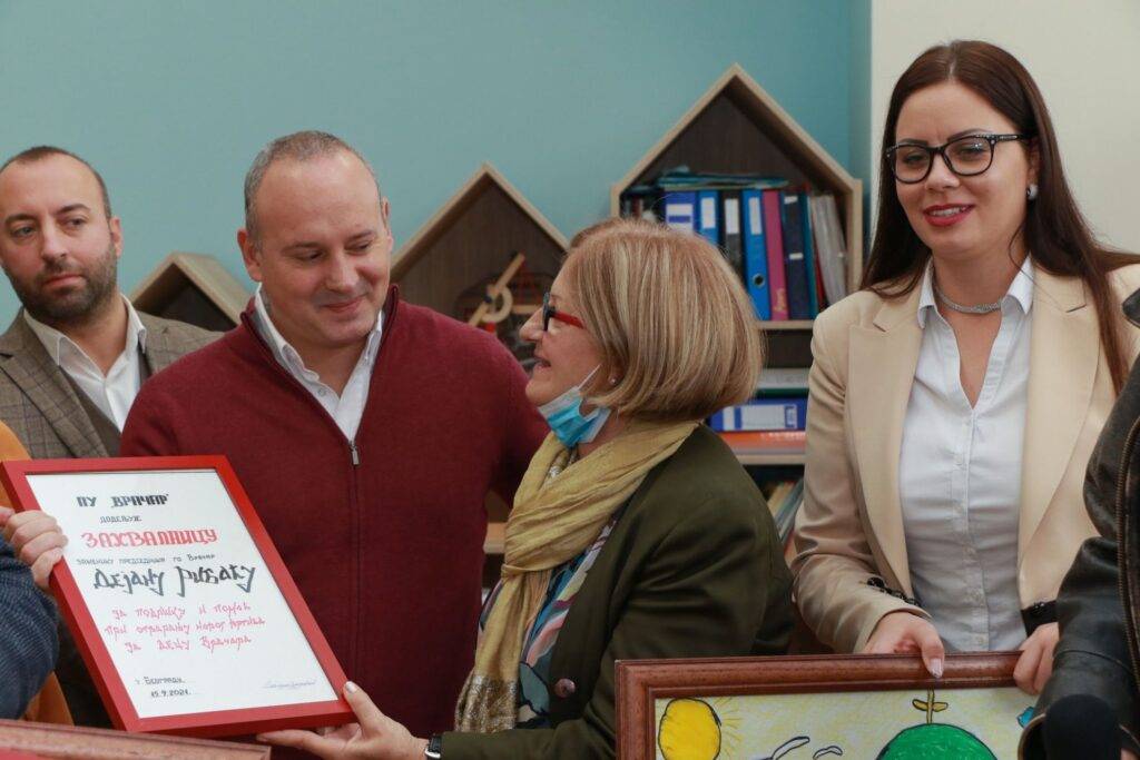 Директорка Предшколске установе Врачар Емилија Ђурђевић и и њен помоћник Јелена Јеленић Јанковић свечано су уручиле Захвалнице и урамљене дечије, ликовне радове председнику проф. др Милану А. Недељковићу, његовом заменику Дејану Рибаћу и начелнику Управе Гордани Басти.