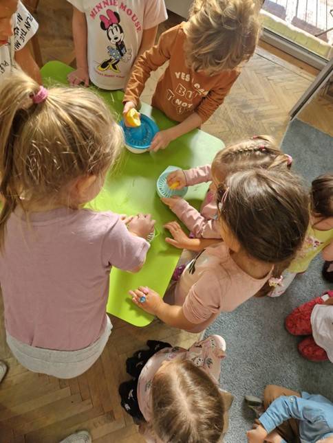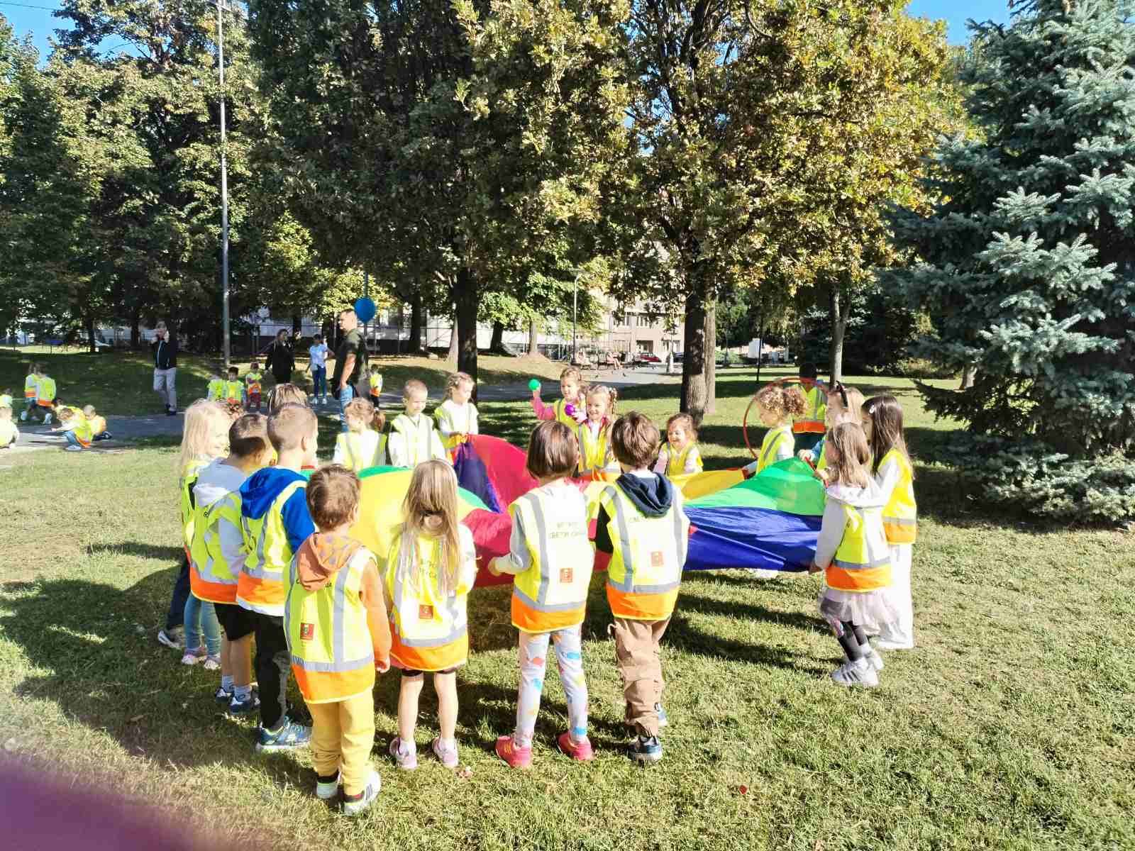 Деца су играла игре са обручима и игре са падобранима и лоптицама.