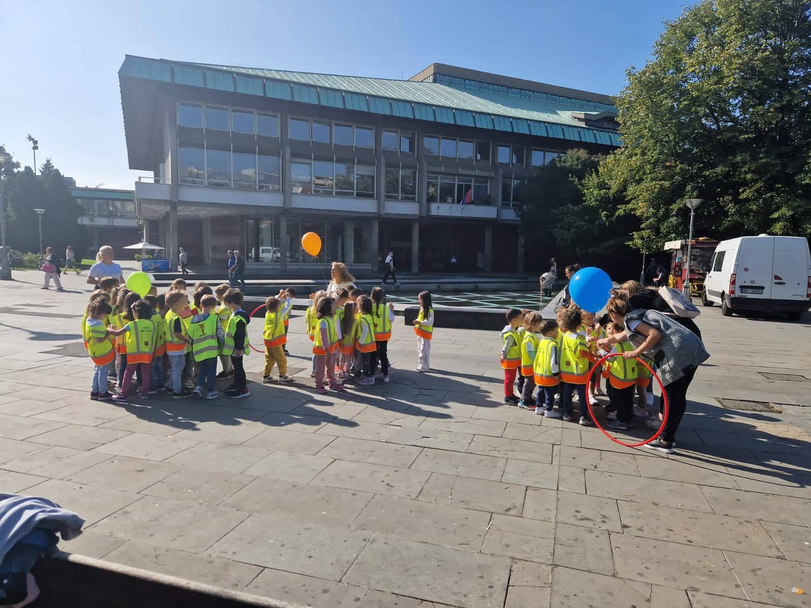 Пуштени су балони пријатељства. Деца су пуштала балоне у боји своје групе.