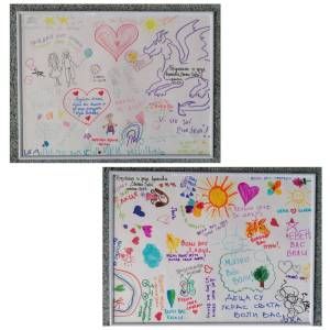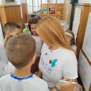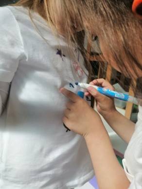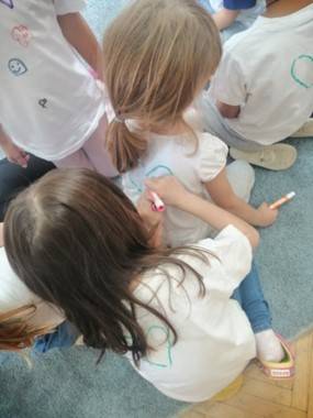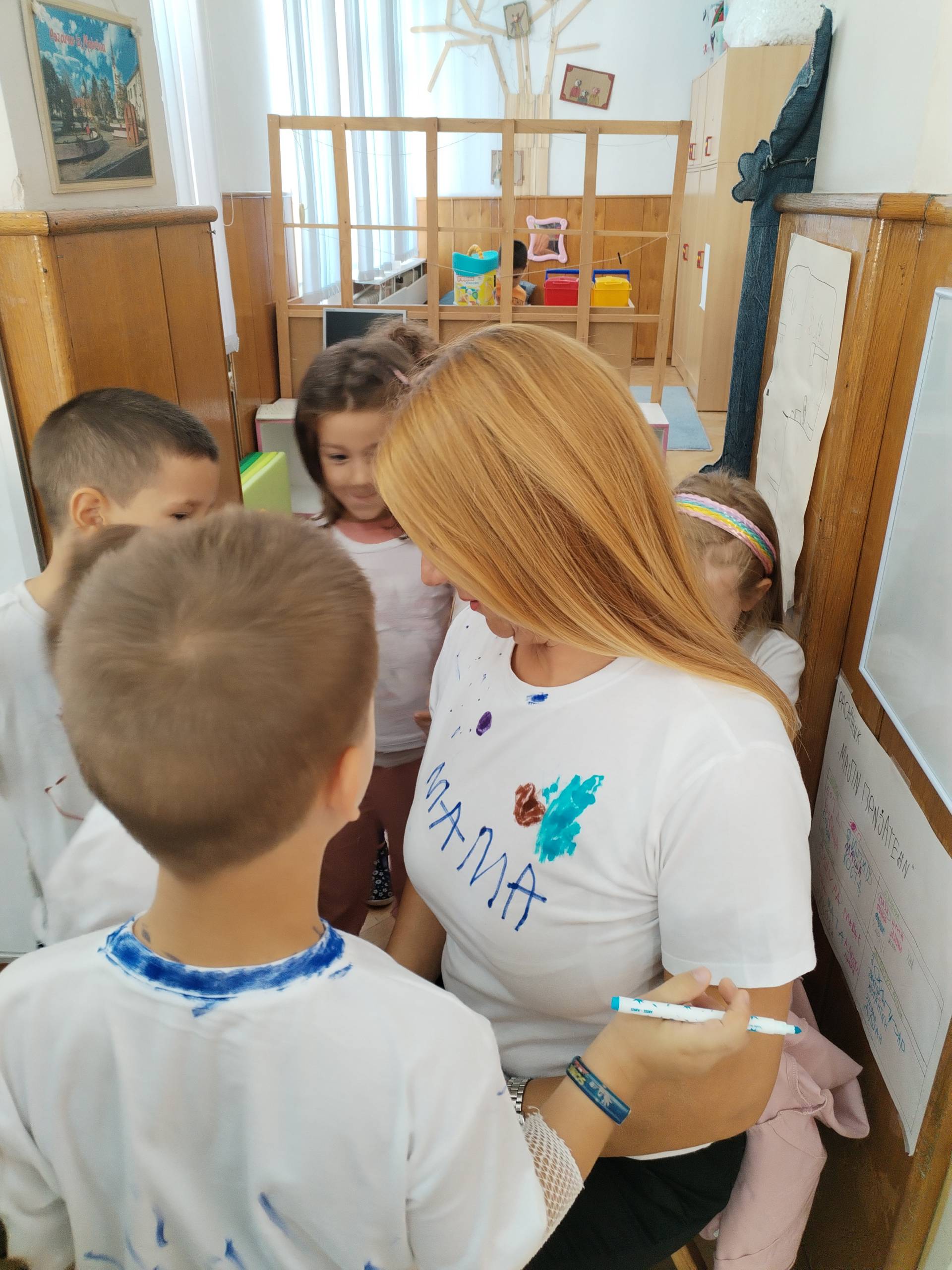 Сва деца су дошла у вртић у белим мајицама по којима смо цртали и писали.