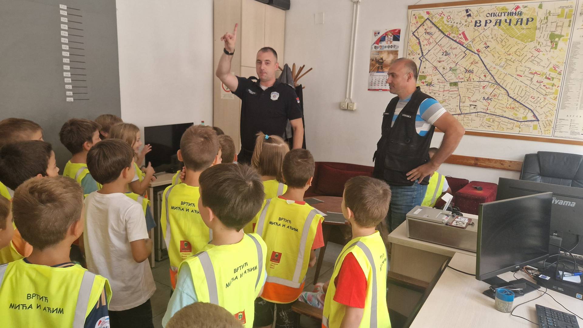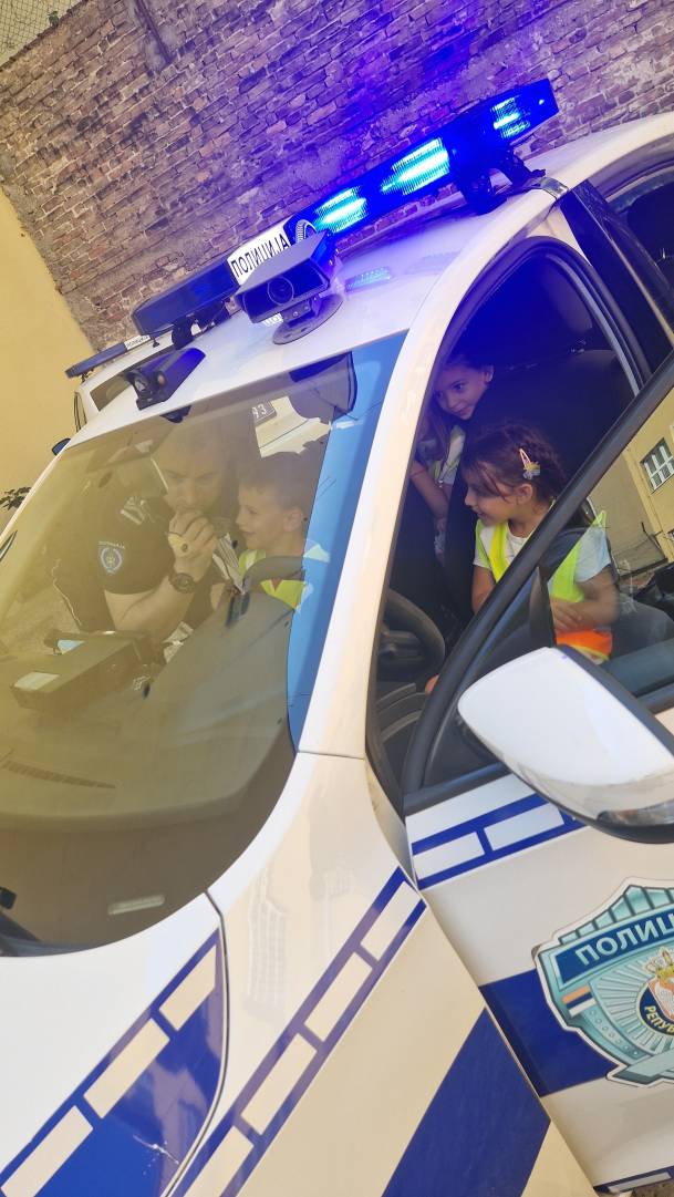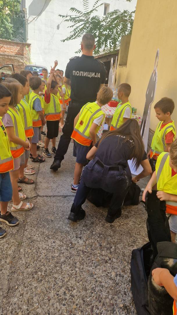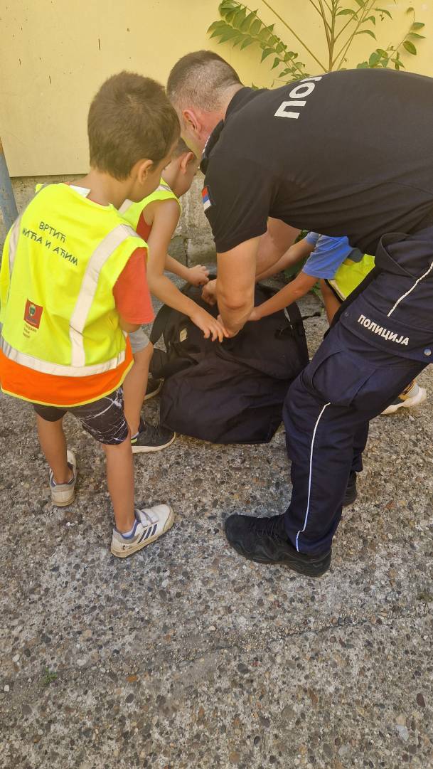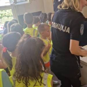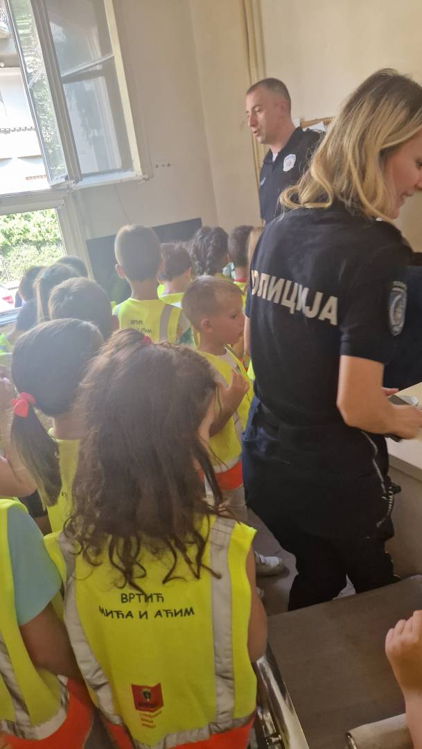 Том приликом предшколци из вртића "Мића и Аћим" са васпитачима и помоћником директора су били у посети мупу Врачар и приближили деци професију полицајца.