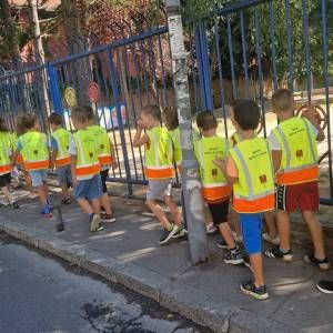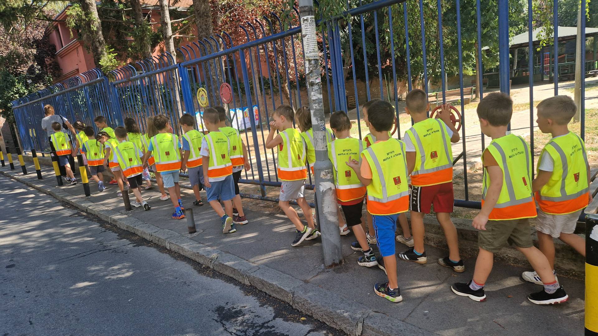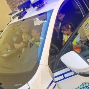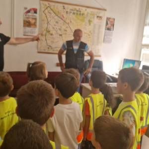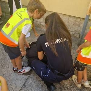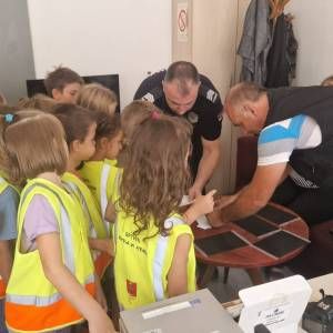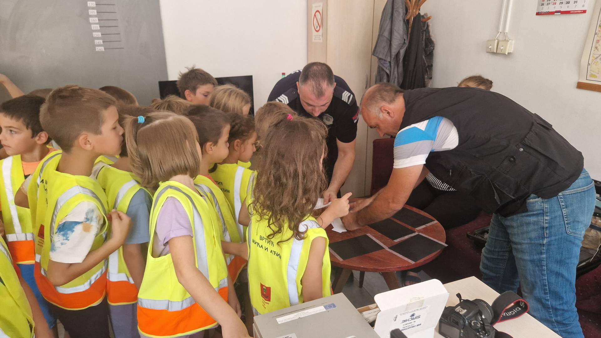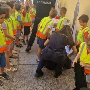 Том приликом предшколци из вртића "Мића и Аћим" са васпитачима и помоћником директора су били у посети мупу Врачар и приближили деци професију полицајца.