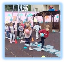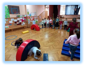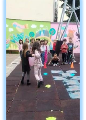 Организоване су спортске игре у сали и дворишту кроз такмичарске и кооперативне игре где су деца показала своју спретност и вештине.