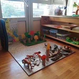 У оквиру пројекта ,,Свако има своје место на планети” почели смо са опремањем посебне просторне целине која садржи разне мапе, енциклопедије, животиње, камење... Деца су учествовала у опремању прављењем дрвећа, доношењем камења, док су родитељи донели мапе (постер и подлоге). Настављамо да обогаћујемо просторну целину у складу са развијањем пројекта.