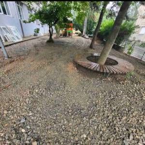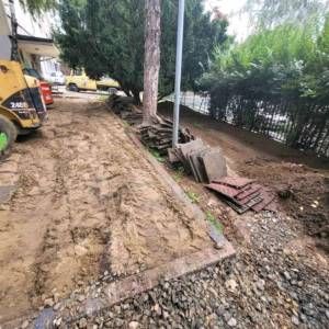 У току су земљани радови, дренажа дворишта, нивелација терена, постављање нових ивичњака, гумирање комплетног дворишта.
