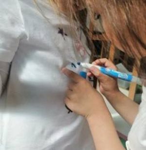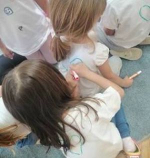 Сва деца су дошла у вртић у белим мајицама по којима смо цртали и писали.