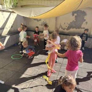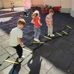(Од куће понесите нешто од реквизита на пример ластиш, чуњеве, обручеве итд.)