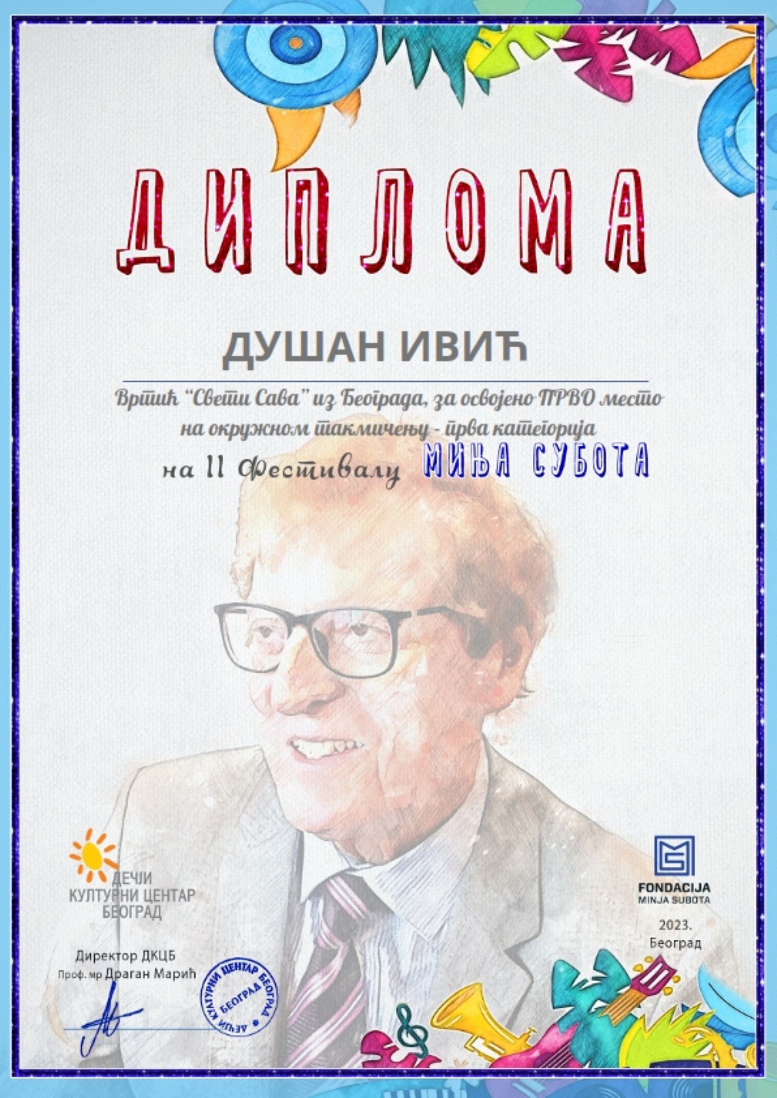 први на ранг листи са 100 поена, у првој категорији нашао се дечак из вртића "Свети Сава", Душан Ивић.