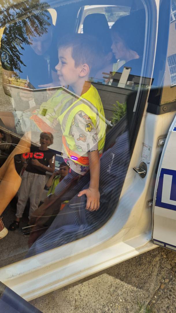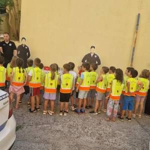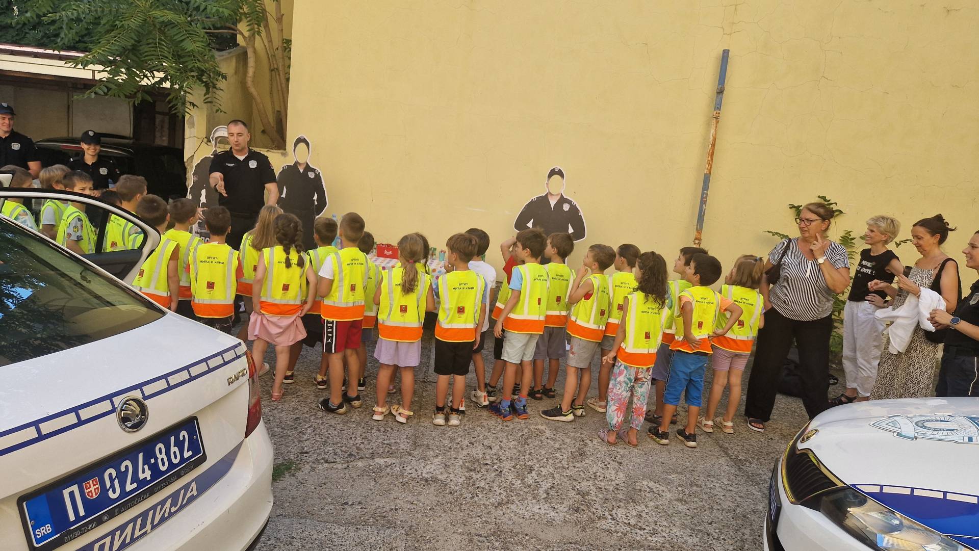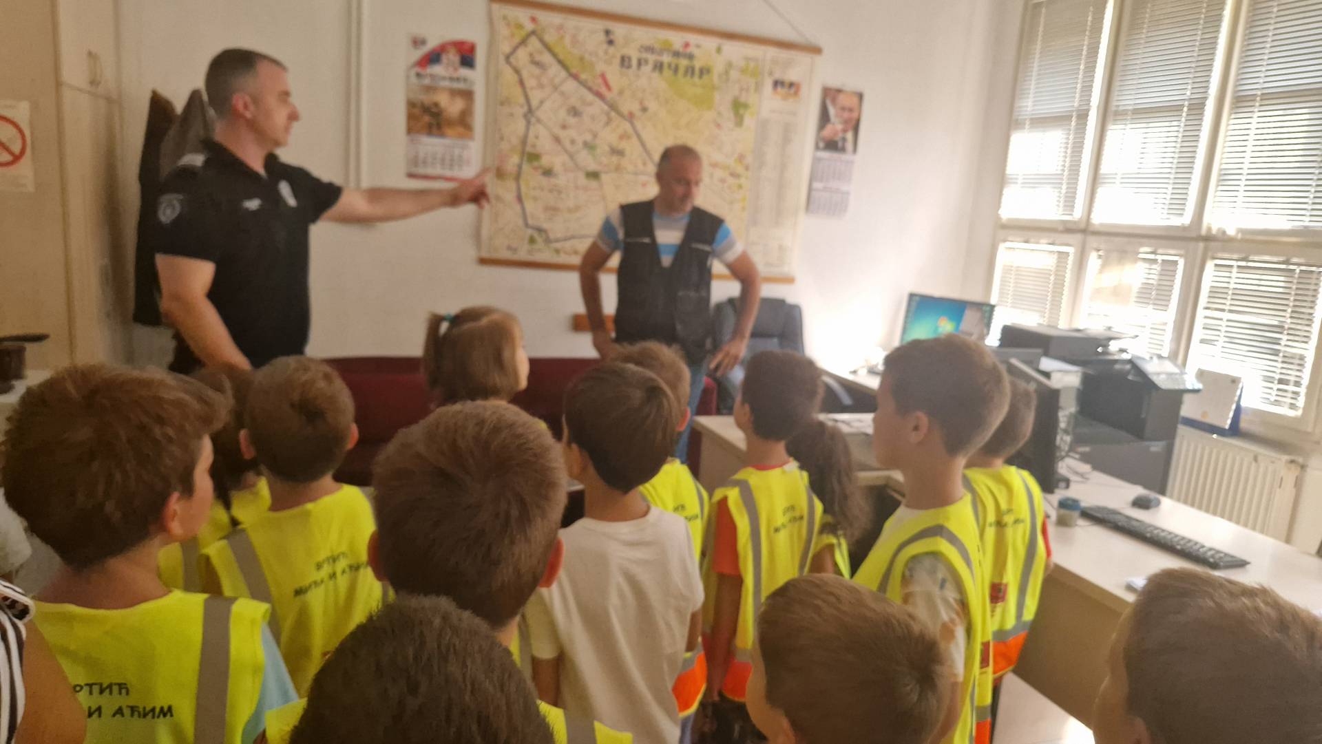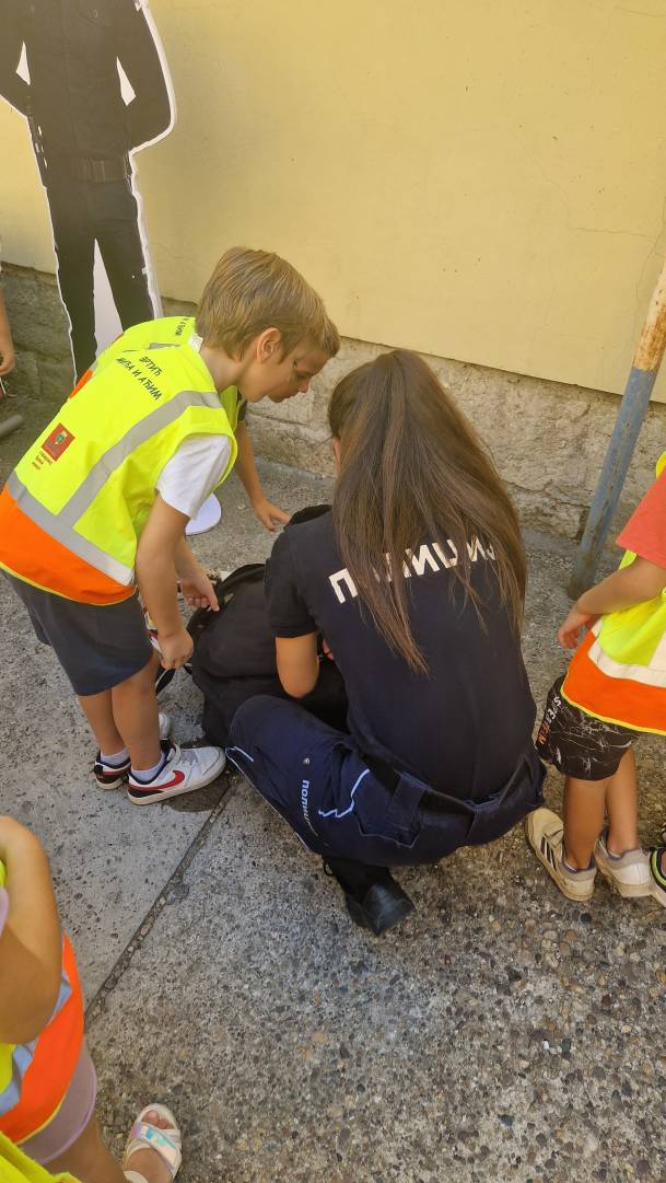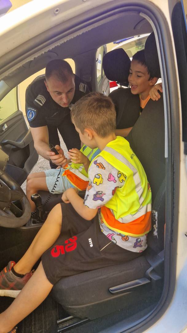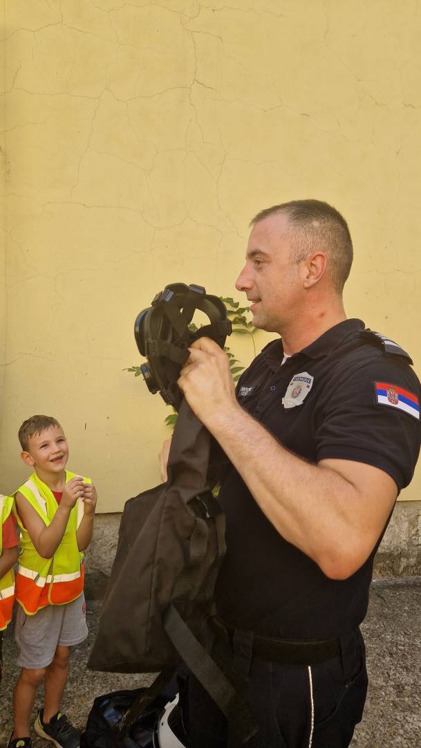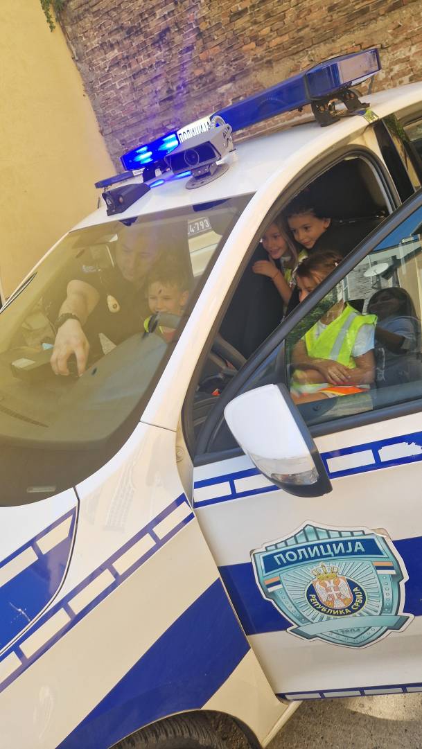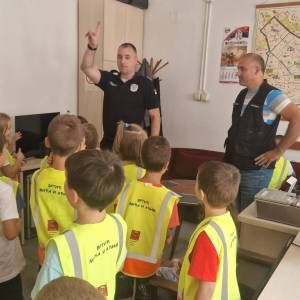 Том приликом предшколци из вртића "Мића и Аћим" са васпитачима и помоћником директора су били у посети мупу Врачар и приближили деци професију полицајца.