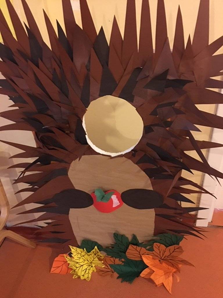 Васпитачи су направили макету јежа помоћу које деца улазе у улогу јежа.