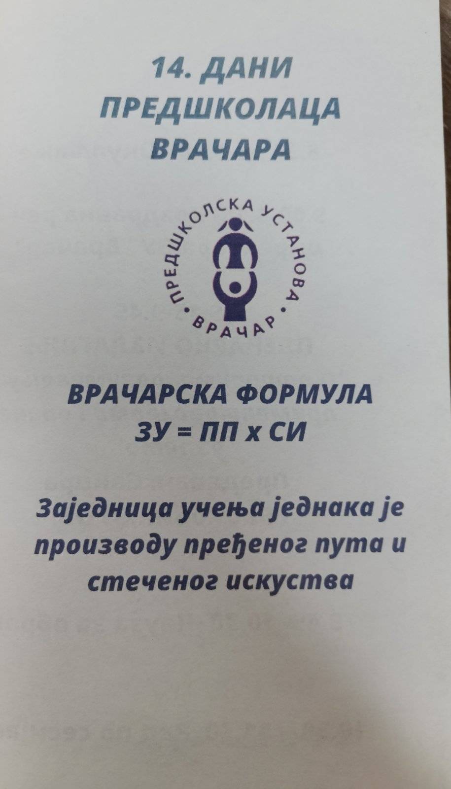 Предшколска установа "Врачар" 31.01.2023. године свечано је обележила четрнаесту по реду манифестацију "Дани предшколаца Врачара" у вртићу "Врачарац". Тема овогодишњег скупа мотивисана је врачарском формулом "Заједница учења једнака је производу пређеног пута и стеченог искуства". Конципиране су четири сесије са темама које одсликавају увиде где се налазимо у примени Нових основа програма предшколског васпитања и образовања.