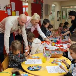 У врачарском вртићу „Мића и Аћим“, поводом најрадоснијег хришћанског празника Васкрса, који је деци посебно мио, 10. априла је одиграна представа за малишане „Ускршњи зека“, након чега је организована и креативна ликовна радионица фарбања ускршњих јаја, бојења цртежа и корпи. Деца су импресионирала присутне својим талентом, а пре свега исказаном интересовању и жељи да учествују у веселој манифестацији.